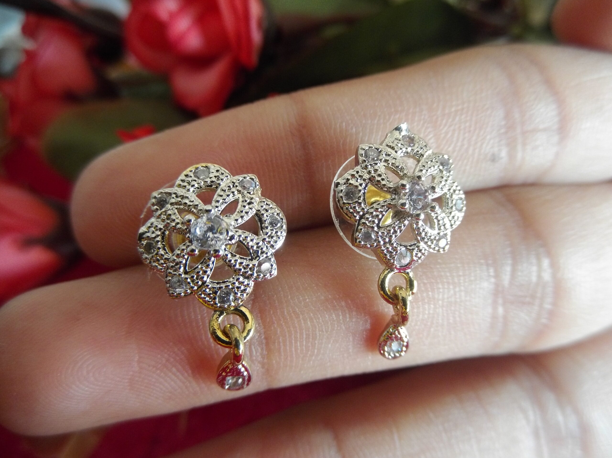 Step into sophistication with our Golden Color Flower Design Tops. Crafted with precision and elegance, these exquisite earrings feature a captivating flower design inlaid with shimmering silver metal AD stones. Each petal of the flower is meticulously adorned, exuding grace and charm.