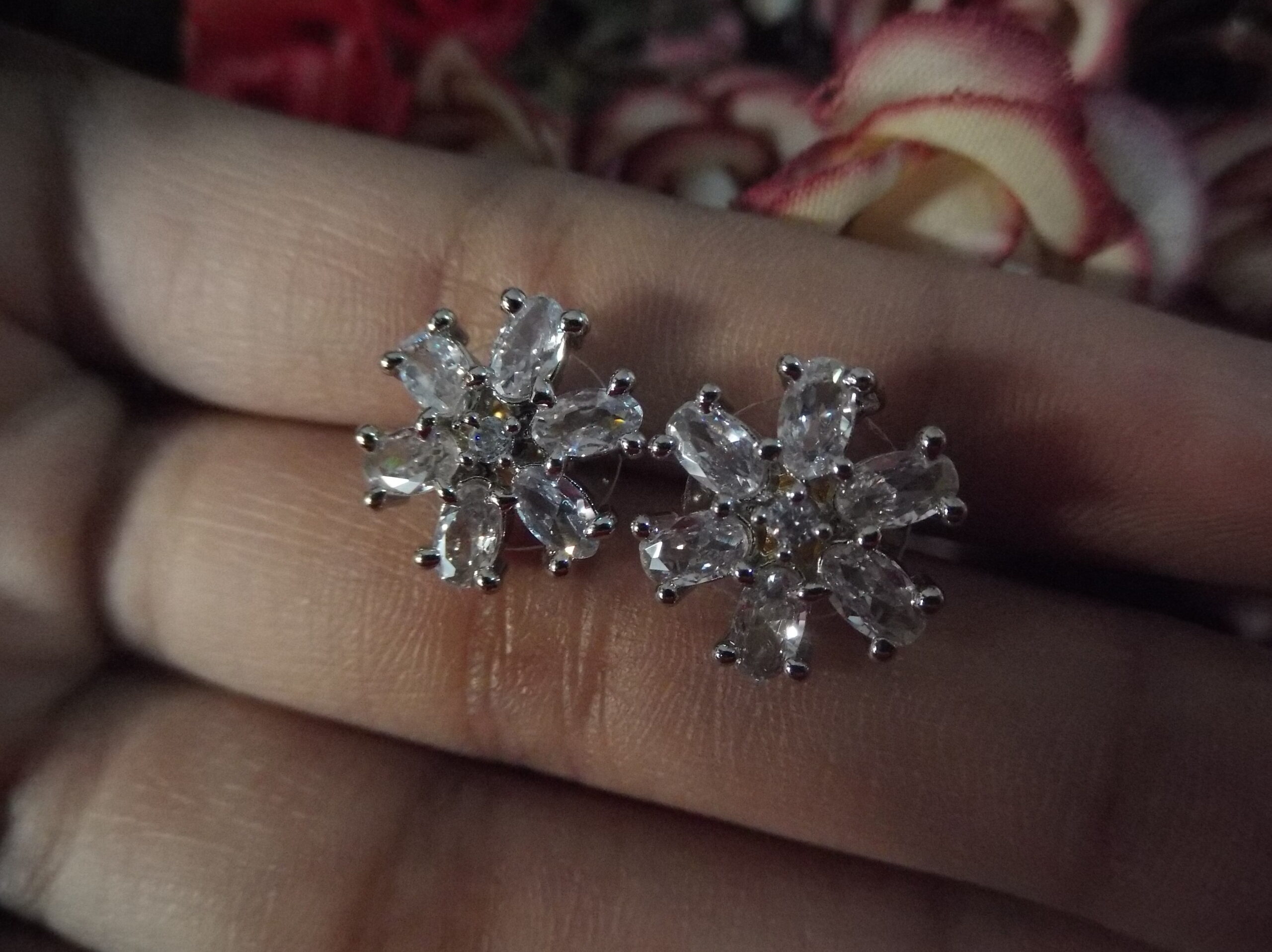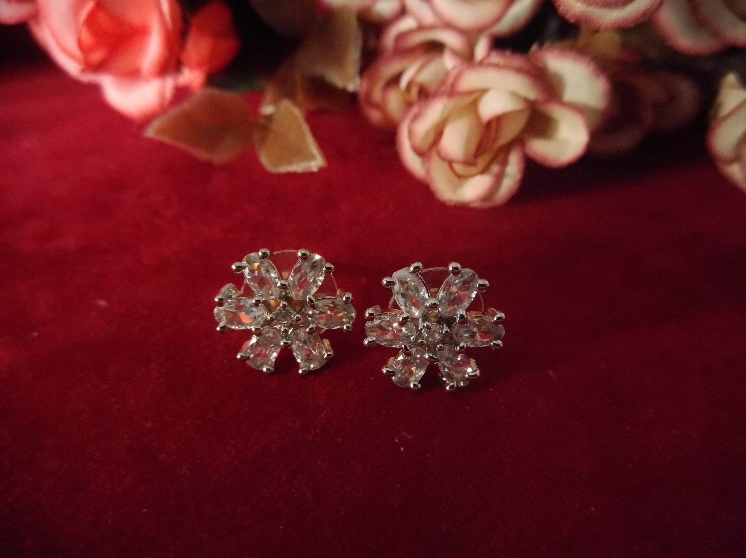 Step into a world of timeless elegance with our meticulously crafted Silver Metal Flower Shaped Earrings. These exquisite earrings feature a captivating floral design, meticulously crafted from high-quality silver metal. Adorned with shimmering white stones, each petal glistens with sophistication and grace, exuding an aura of refinement.