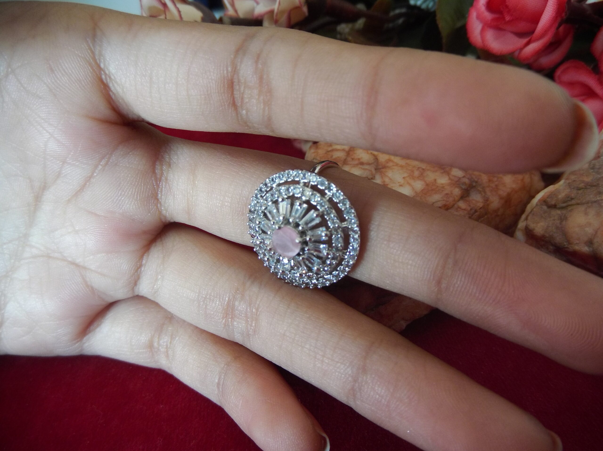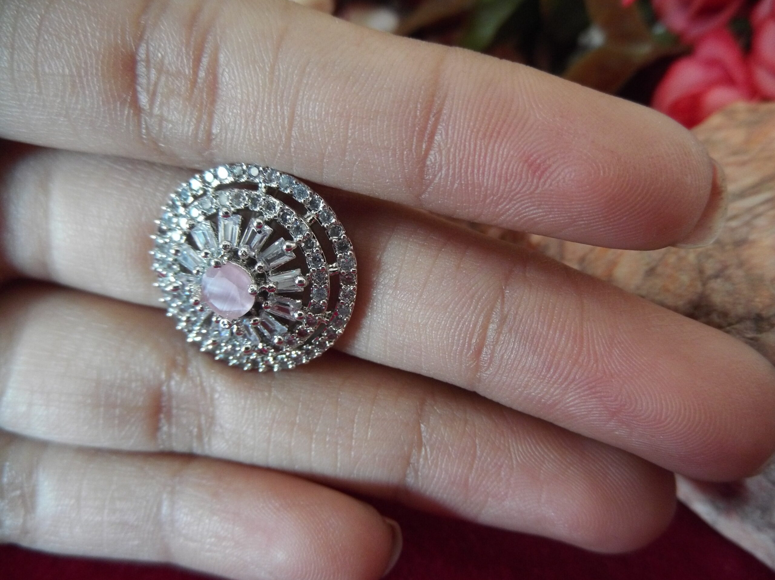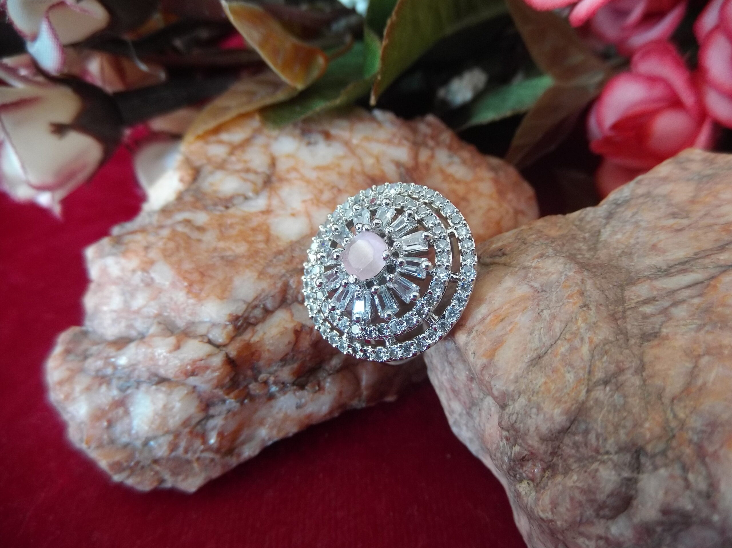 The intricate flower design is a testament to meticulous craftsmanship, with each detail carefully sculpted to capture the beauty of nature. Adorned with stunning American Diamonds, these rings shimmer and sparkle with every movement, drawing attention and admiration wherever you go.