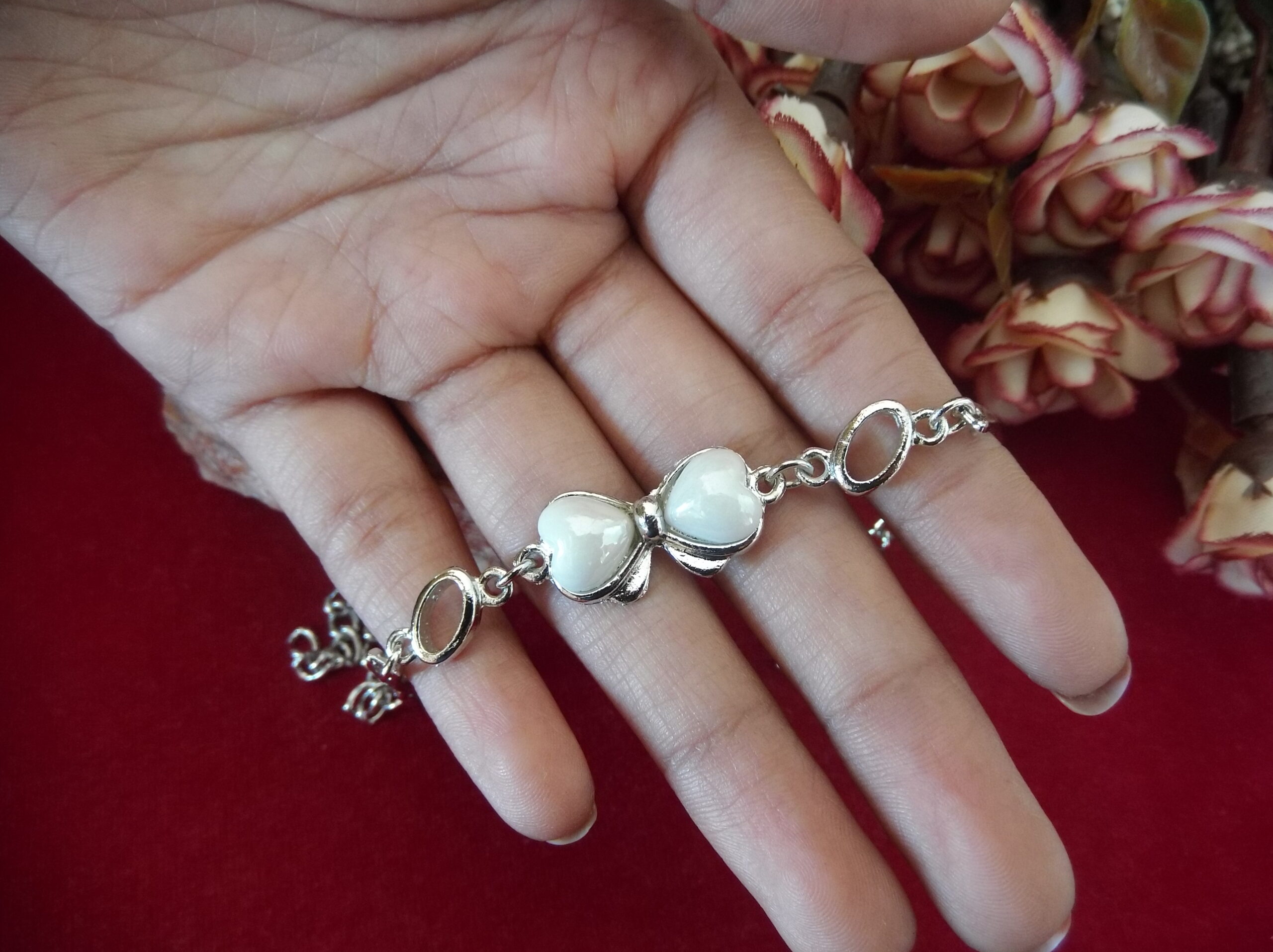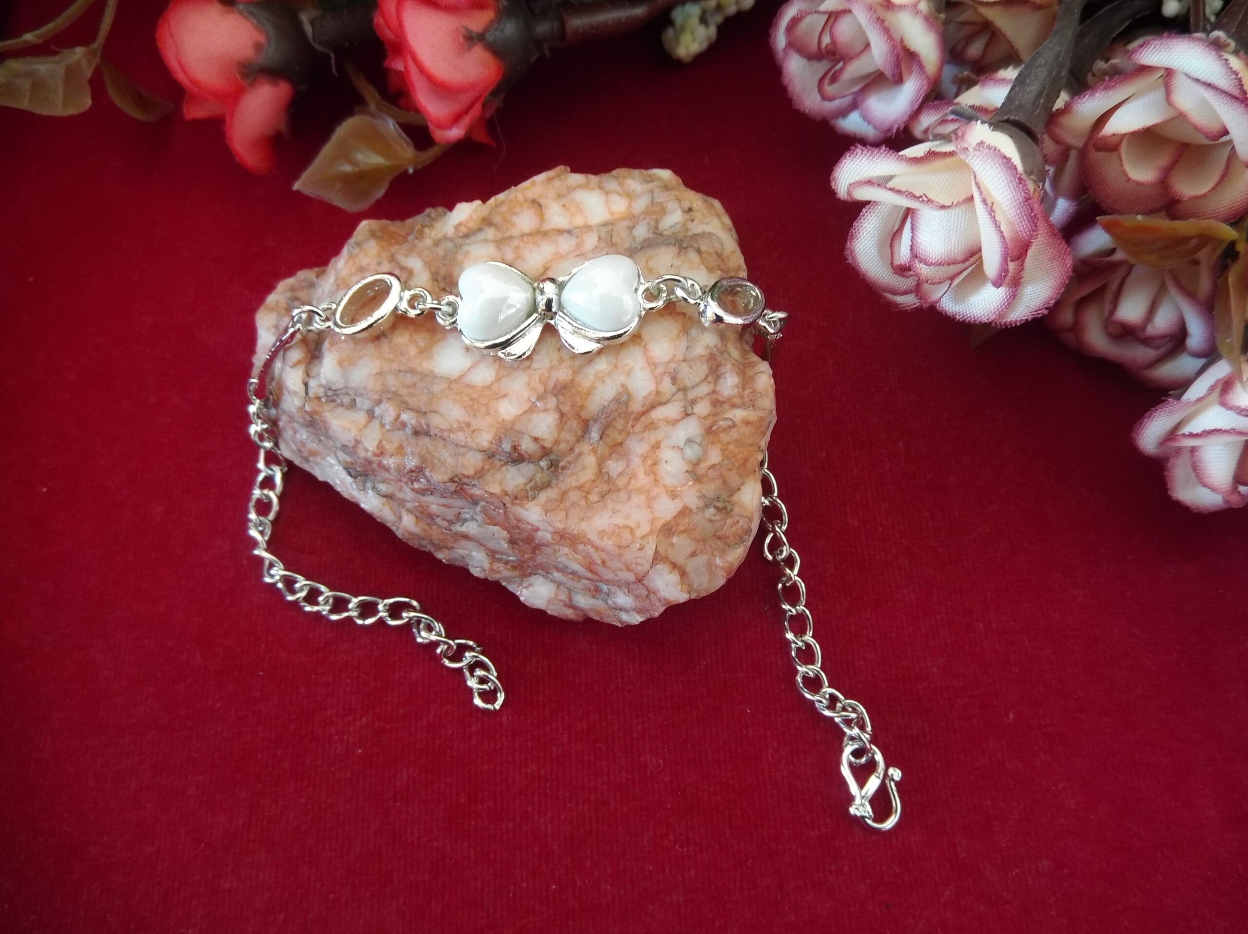Step into elegance with our Silver Metal Ladies Chain Bead Bracelet, a stunning accessory that adds sophistication to any ensemble. At its centerpiece lies a graceful metal bow, meticulously crafted to perfection and adorned with intricate detailing that exudes charm and grace. Each delicate curve and design element is accentuated by brilliant white stones, adding a touch of sparkle and brilliance to this exquisite piece. The white metal engravings further enhance its beauty, while both sides are adorned with shimmering white sparkling stones, ensuring that every angle catches the light for maximum impact. This bracelet is more than just jewelry; it’s a reflection of timeless beauty and refined taste. Elevate your style effortlessly with our Silver Metal Ladies Chain Bead Bracelet, a statement piece that captures the essence of elegance and femininity.