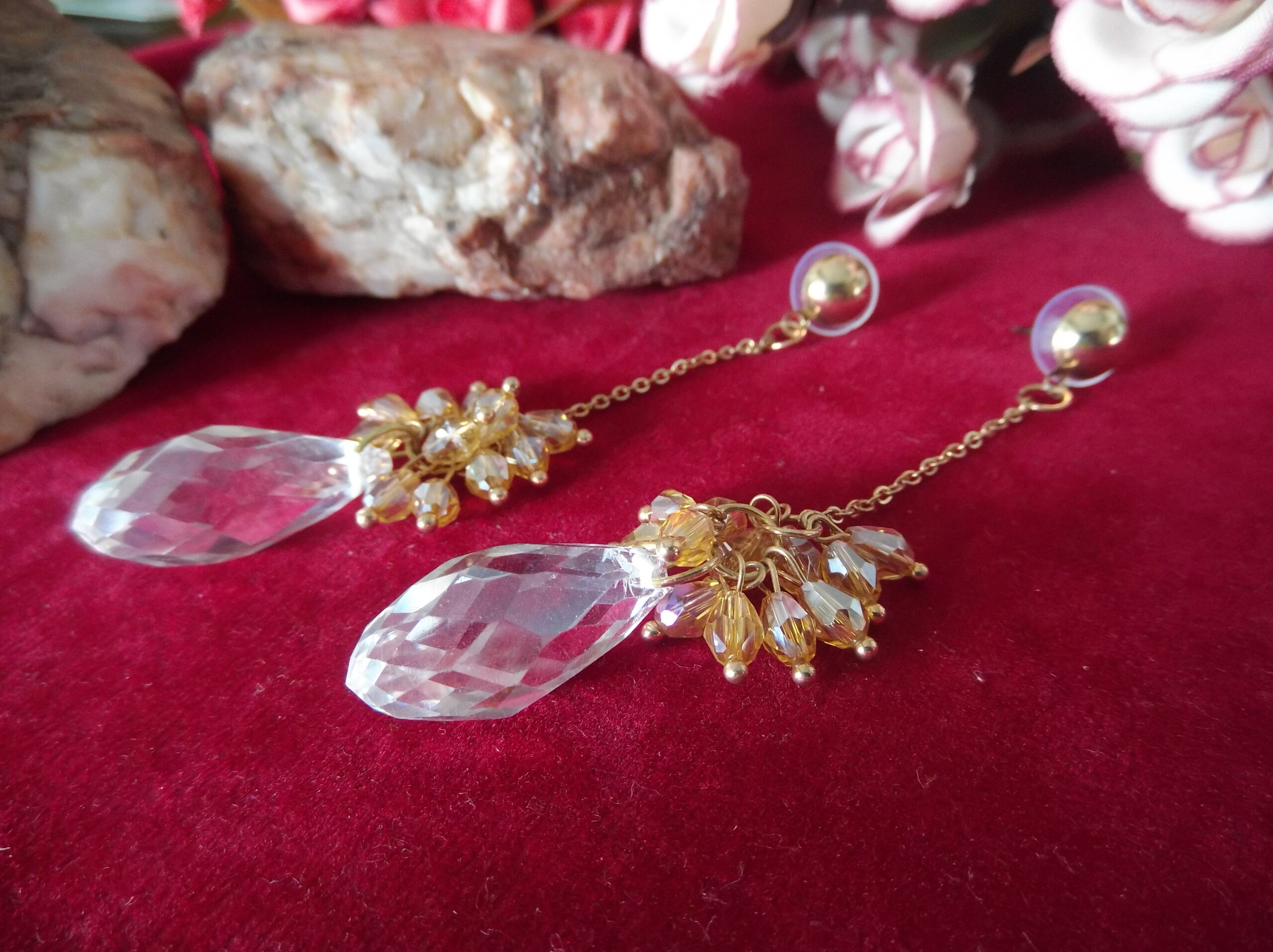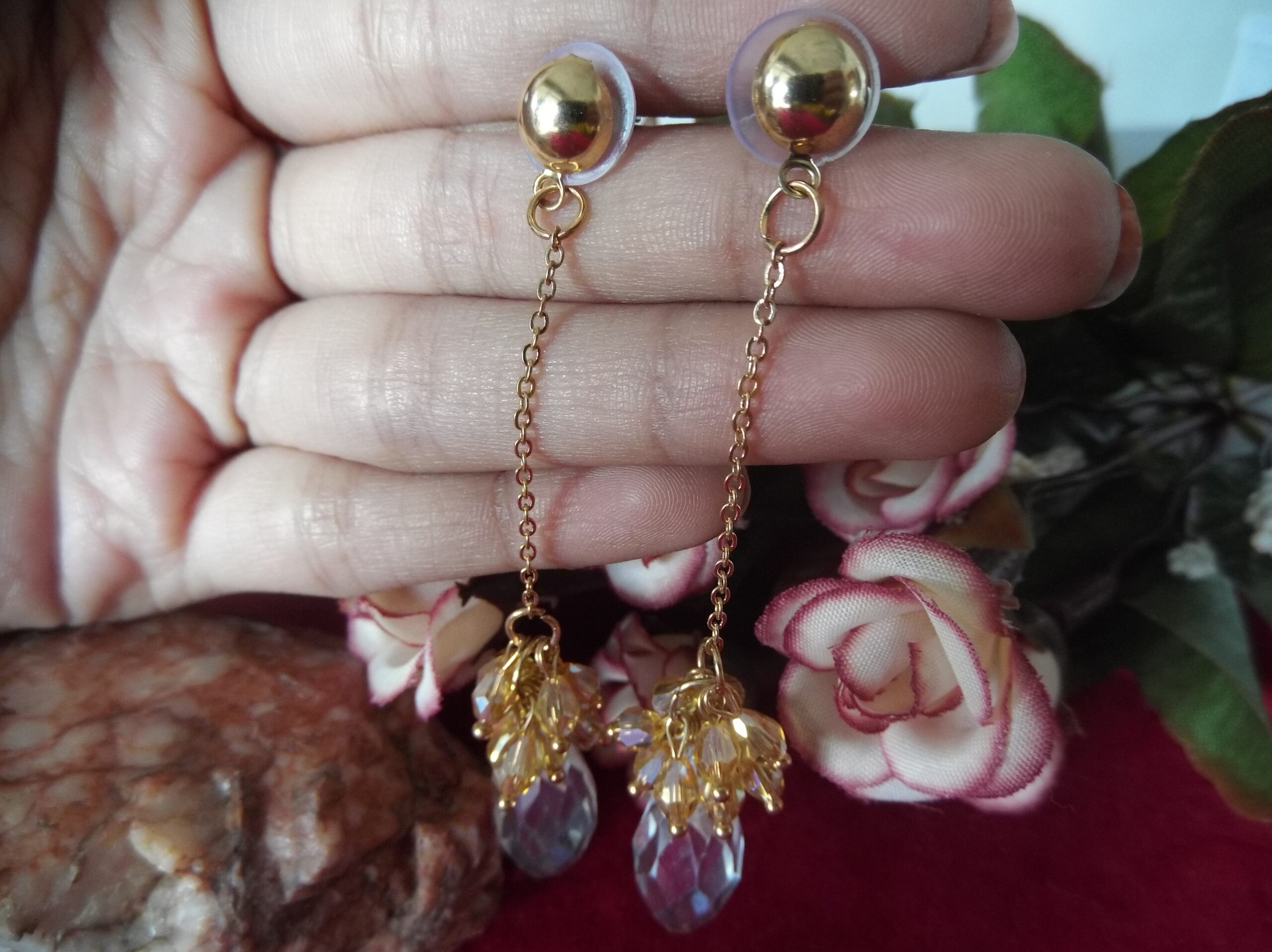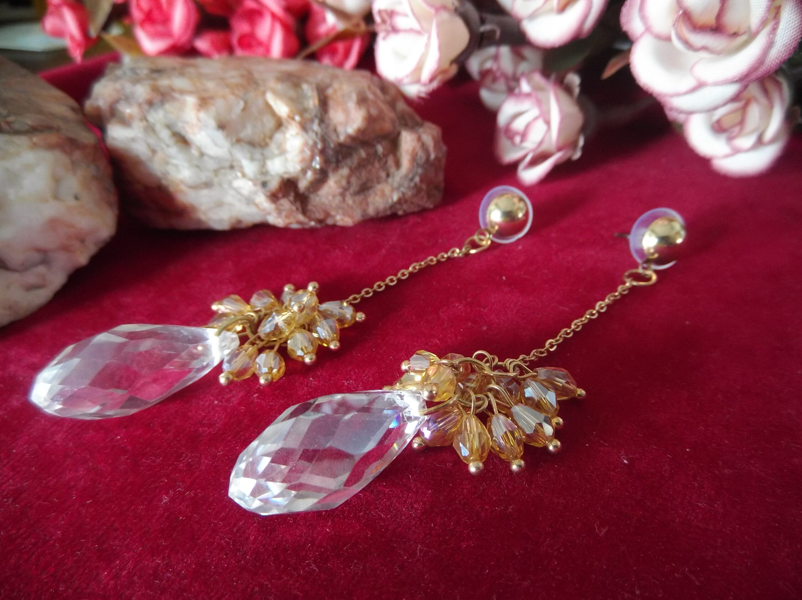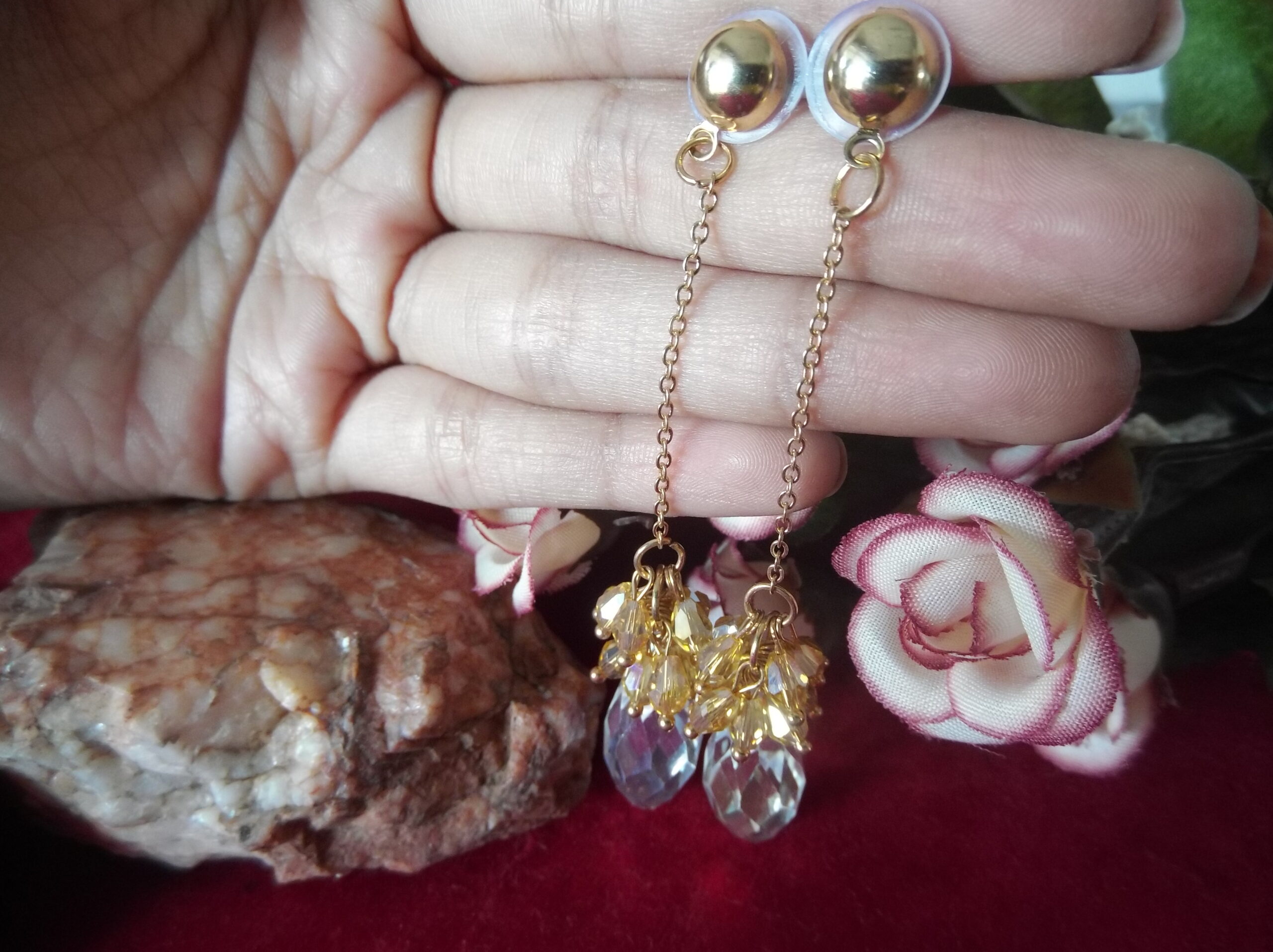 Indulge in luxury with our Golden-Colored Metal Chain Base Earrings. Crafted to perfection, these earrings feature stunning large crystal beads elegantly suspended from a golden chain. Adorned with a delicate arrangement of small golden beads, each earring embodies sophistication and charm. Elevate your style effortlessly with these exquisite earrings, perfect for adding a touch of glamour to any outfit.