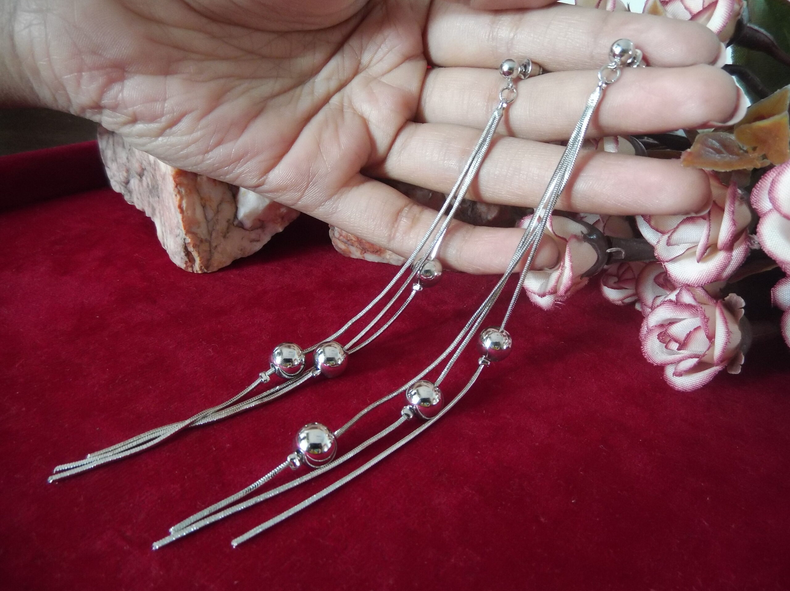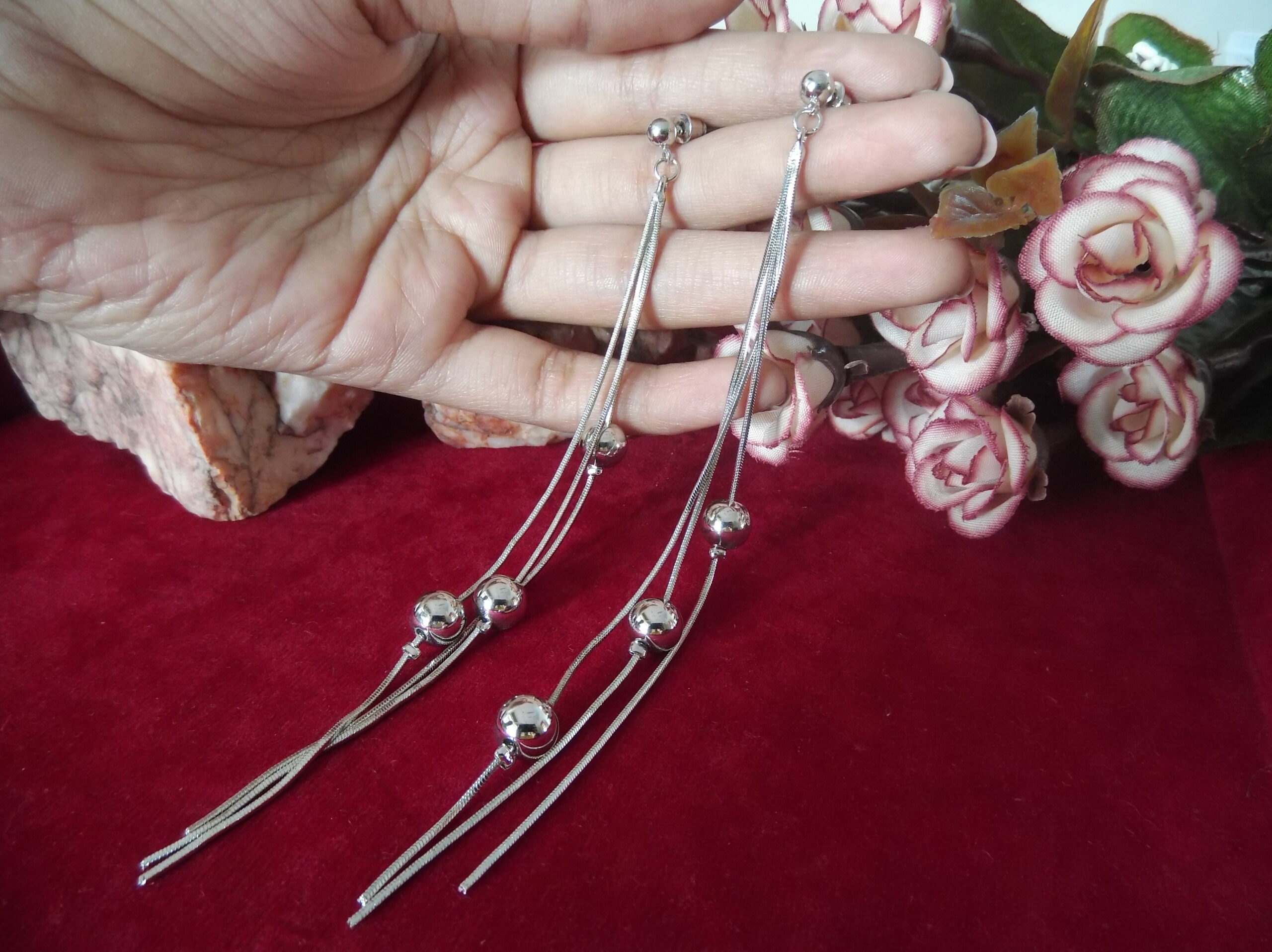 Introducing our exquisite Silver Metal Chain Earrings! Crafted with meticulous detail, these earrings feature long chains adorned with small metal balls that cascade gracefully. Each chain adds a touch of elegance and movement, creating a captivating look that’s both chic and versatile. Elevate your style effortlessly with these stunning earrings, perfect for any occasion.