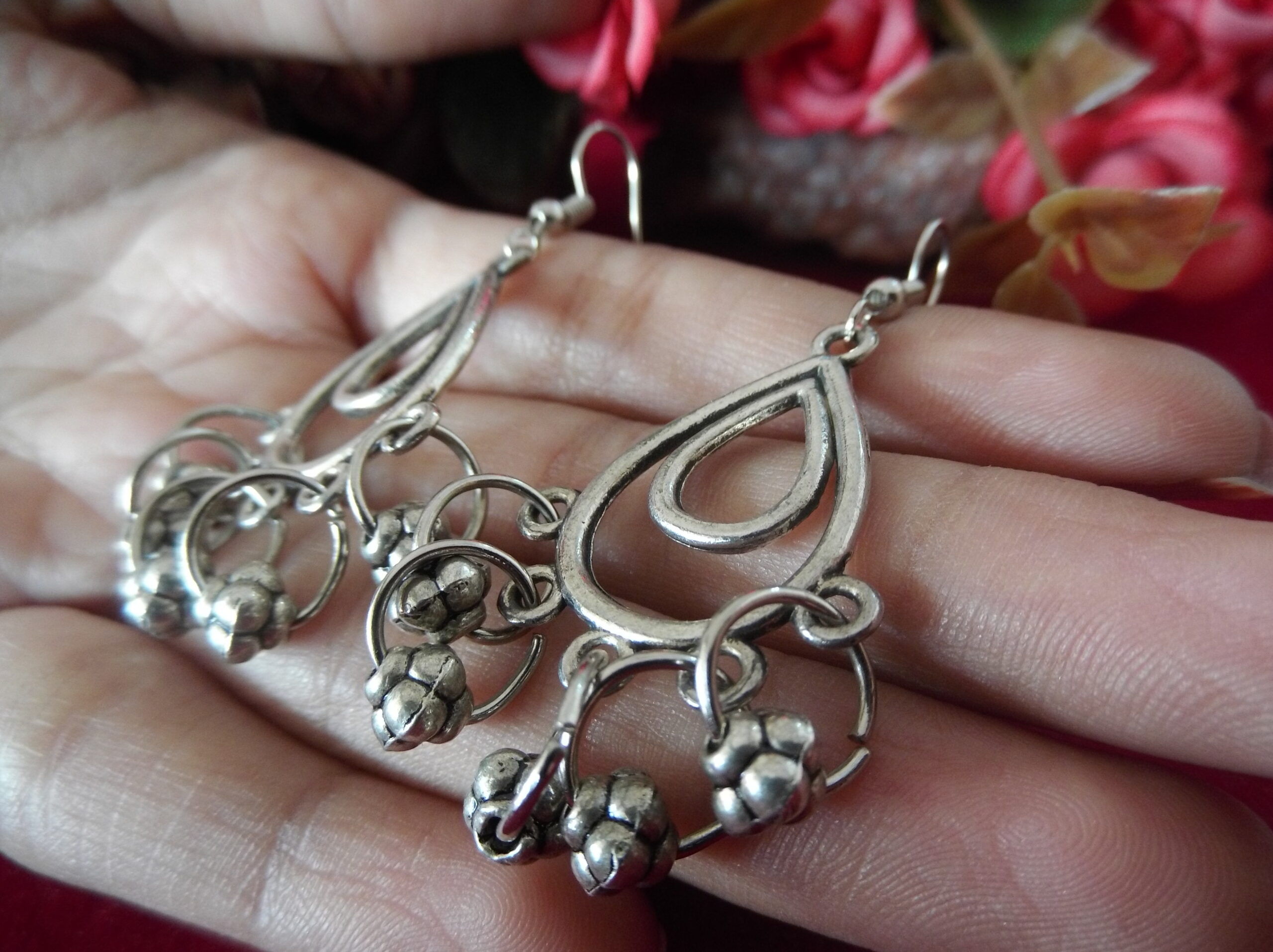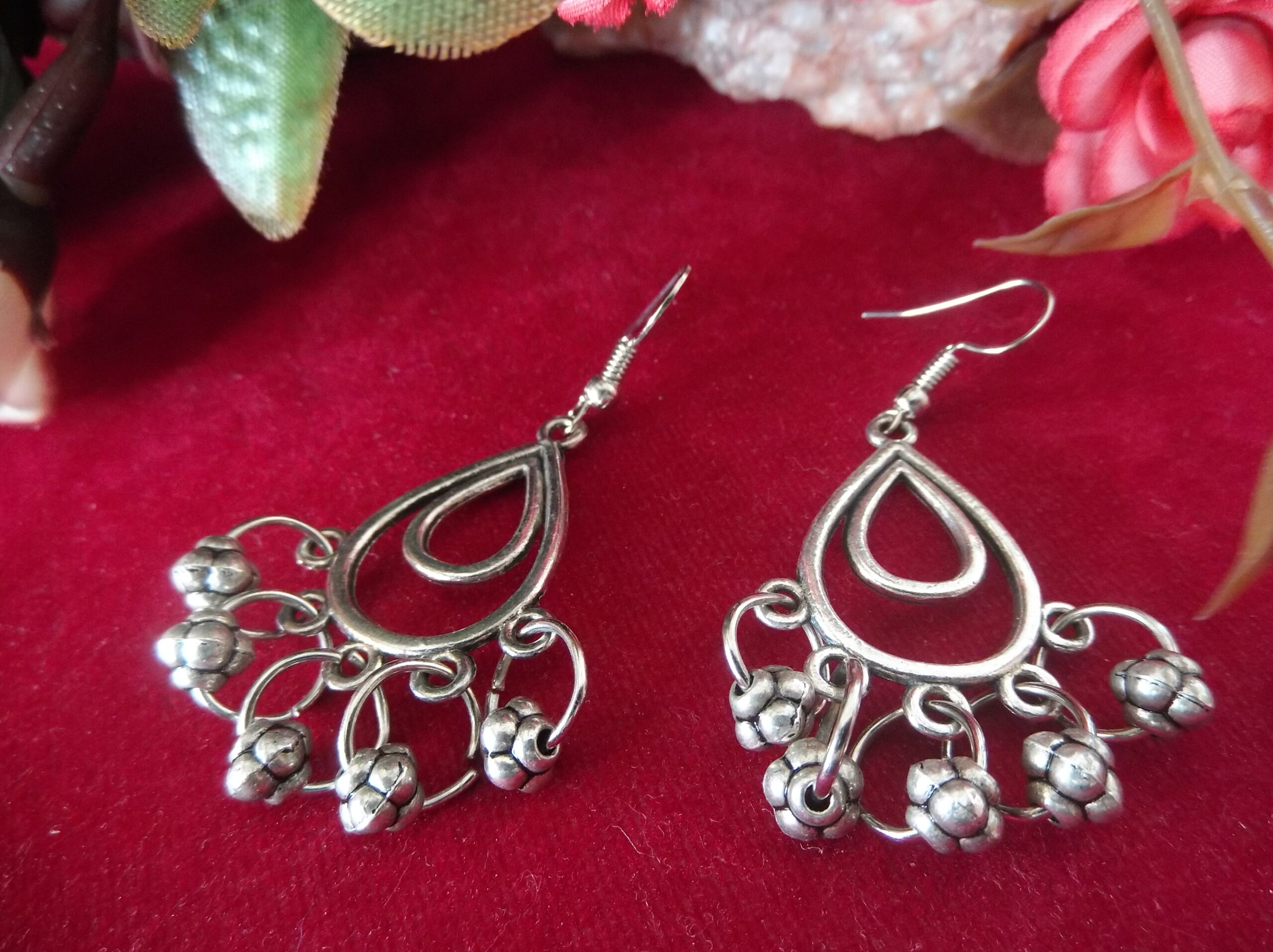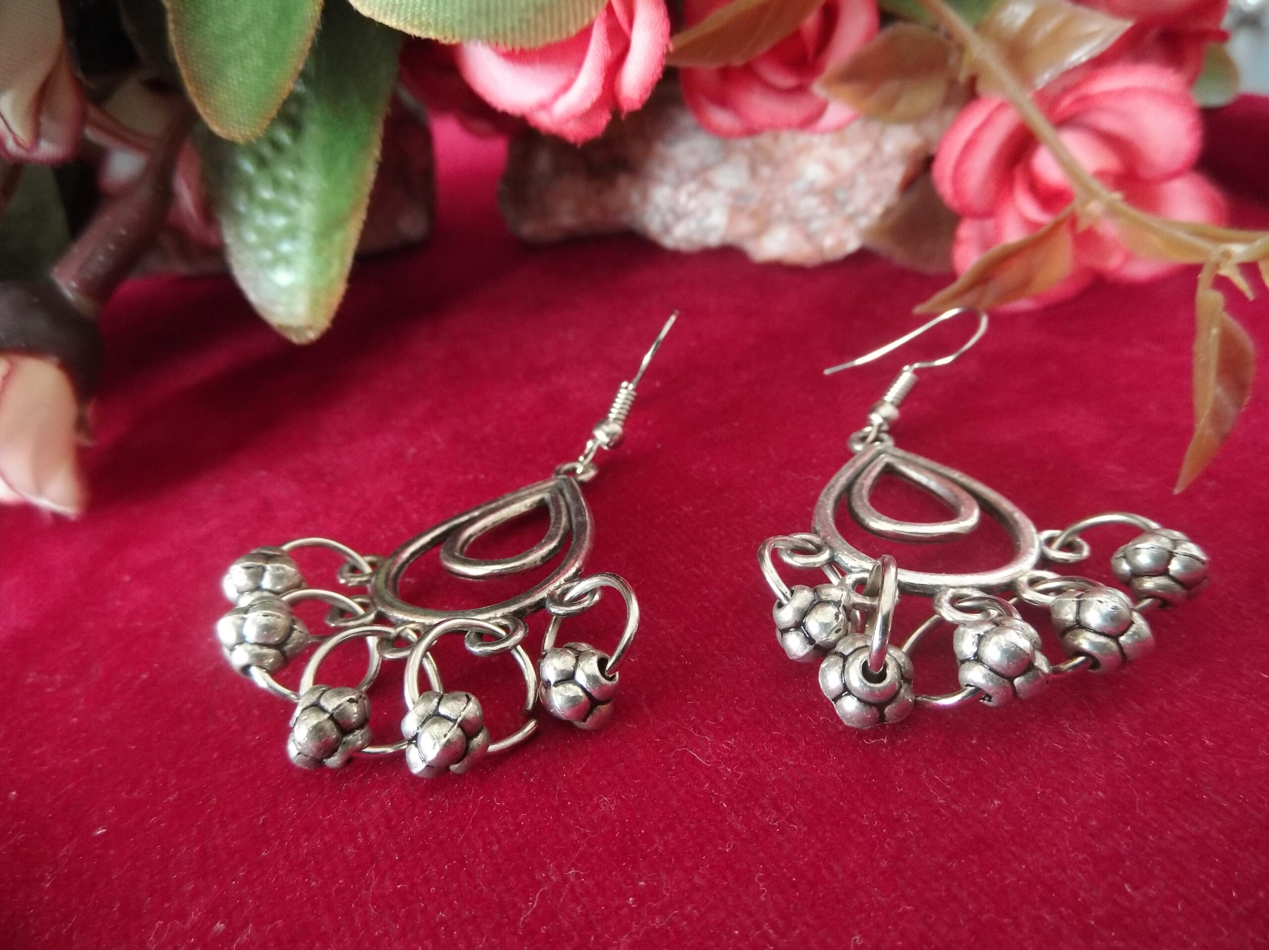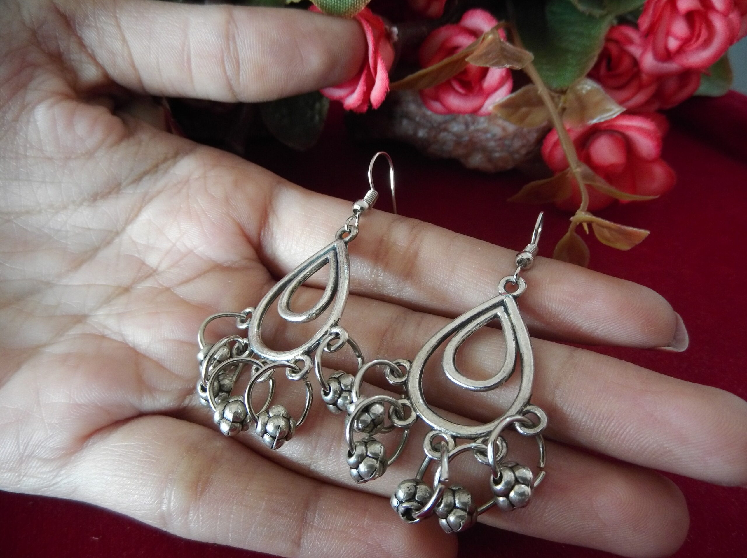 The silver oxidized finish lends a timeless appeal to the design, creating a striking contrast against the metallic balls and small rings. Each element is carefully crafted to perfection, reflecting light with grace and elegance.