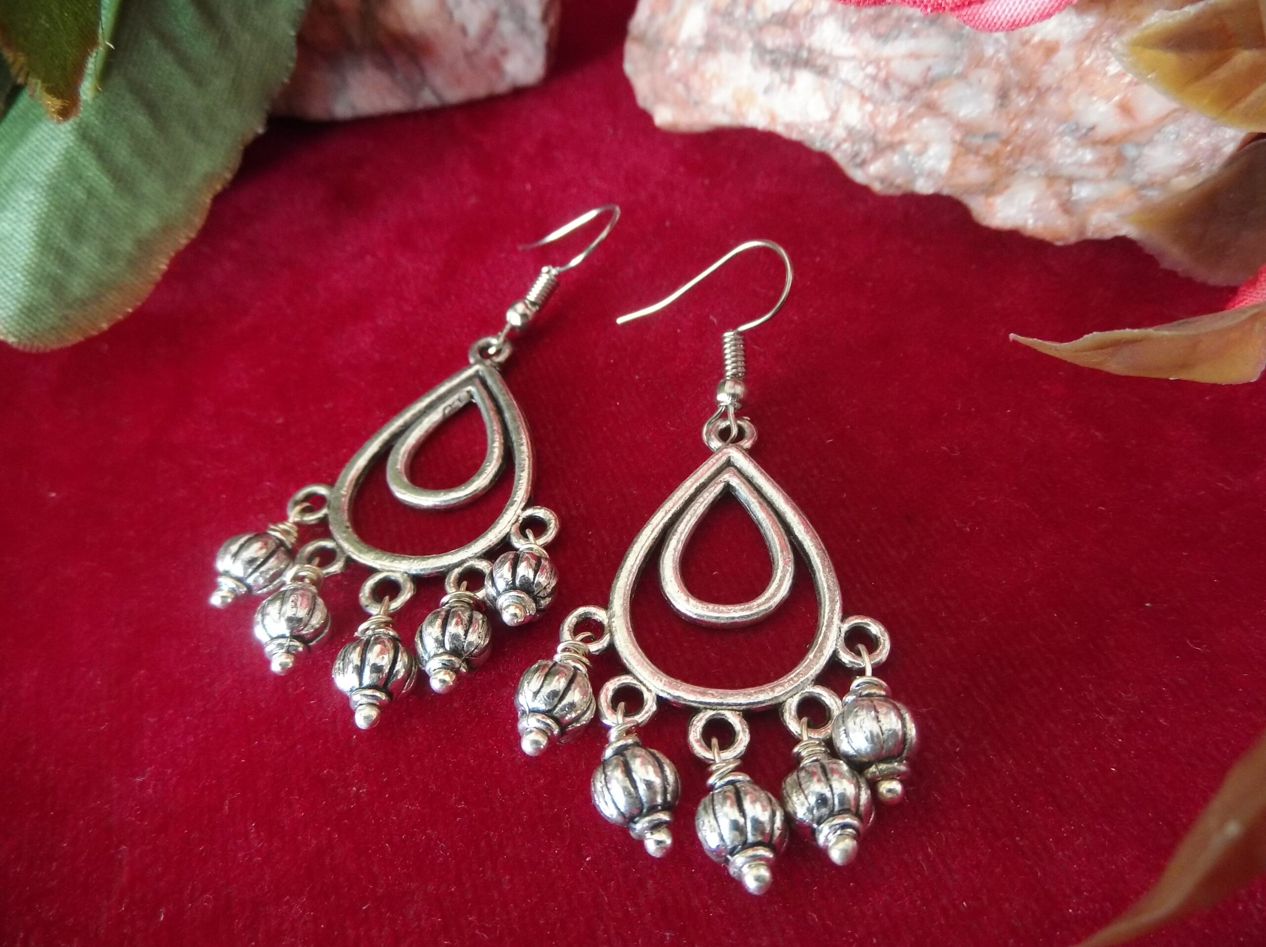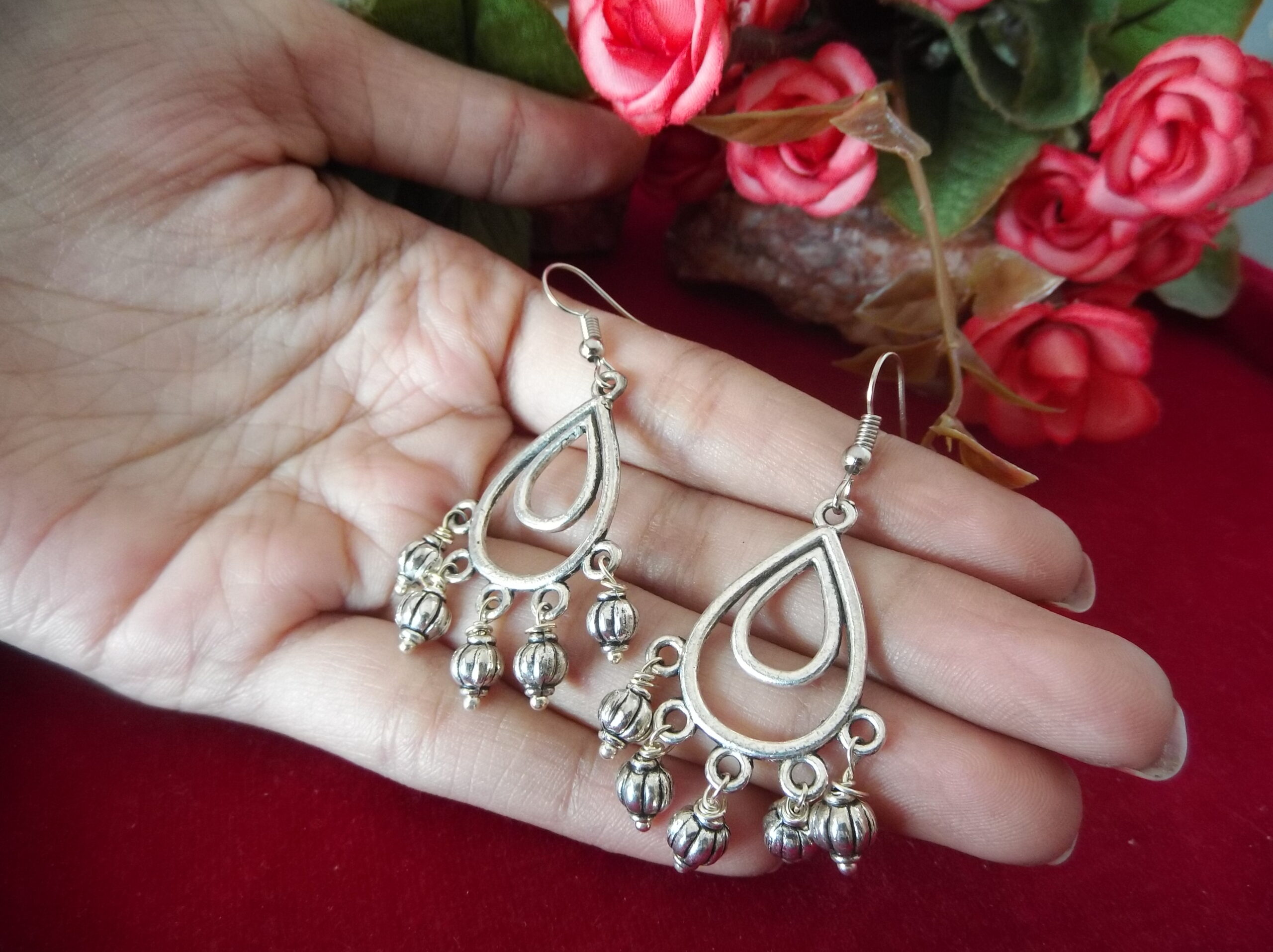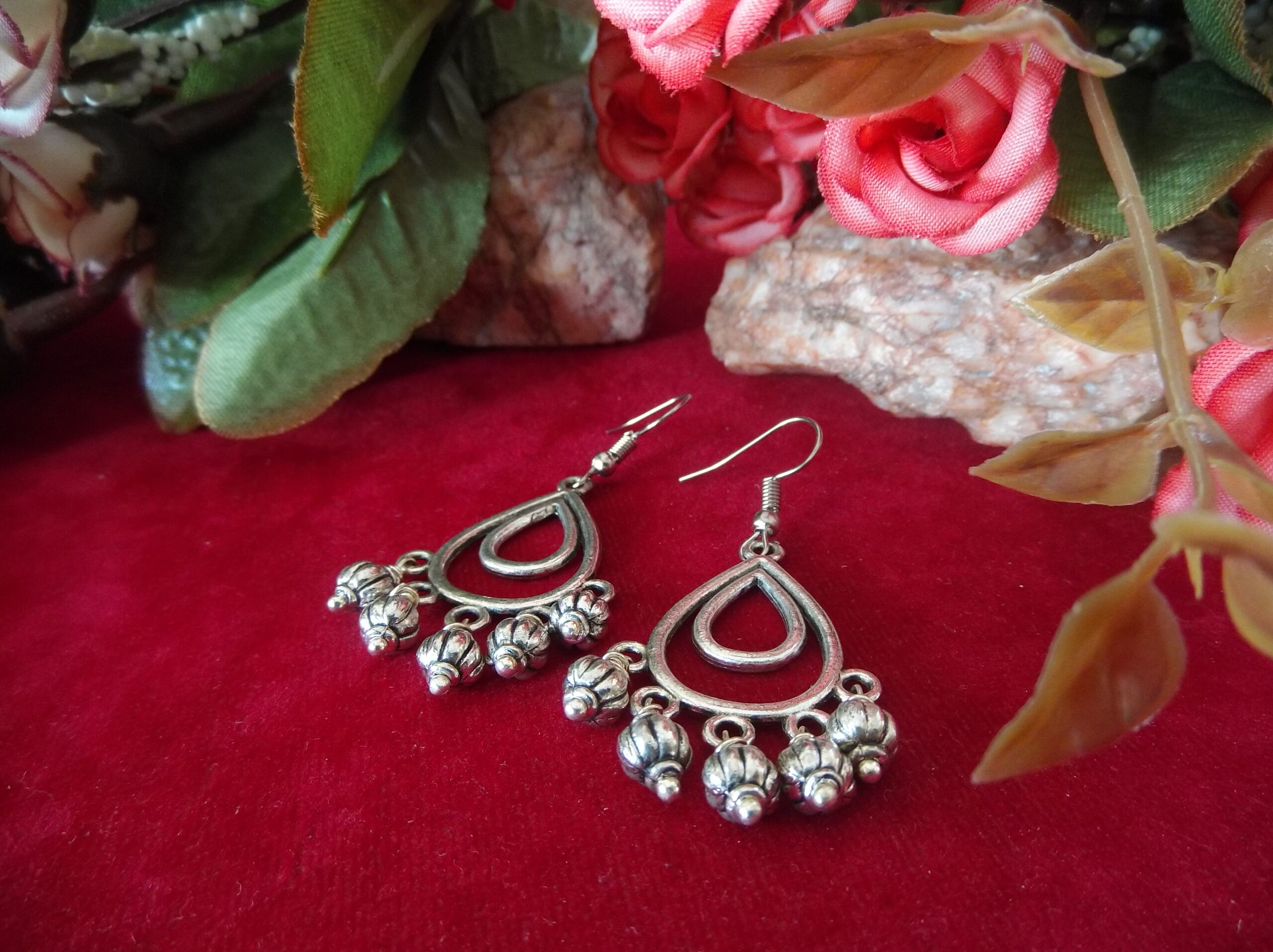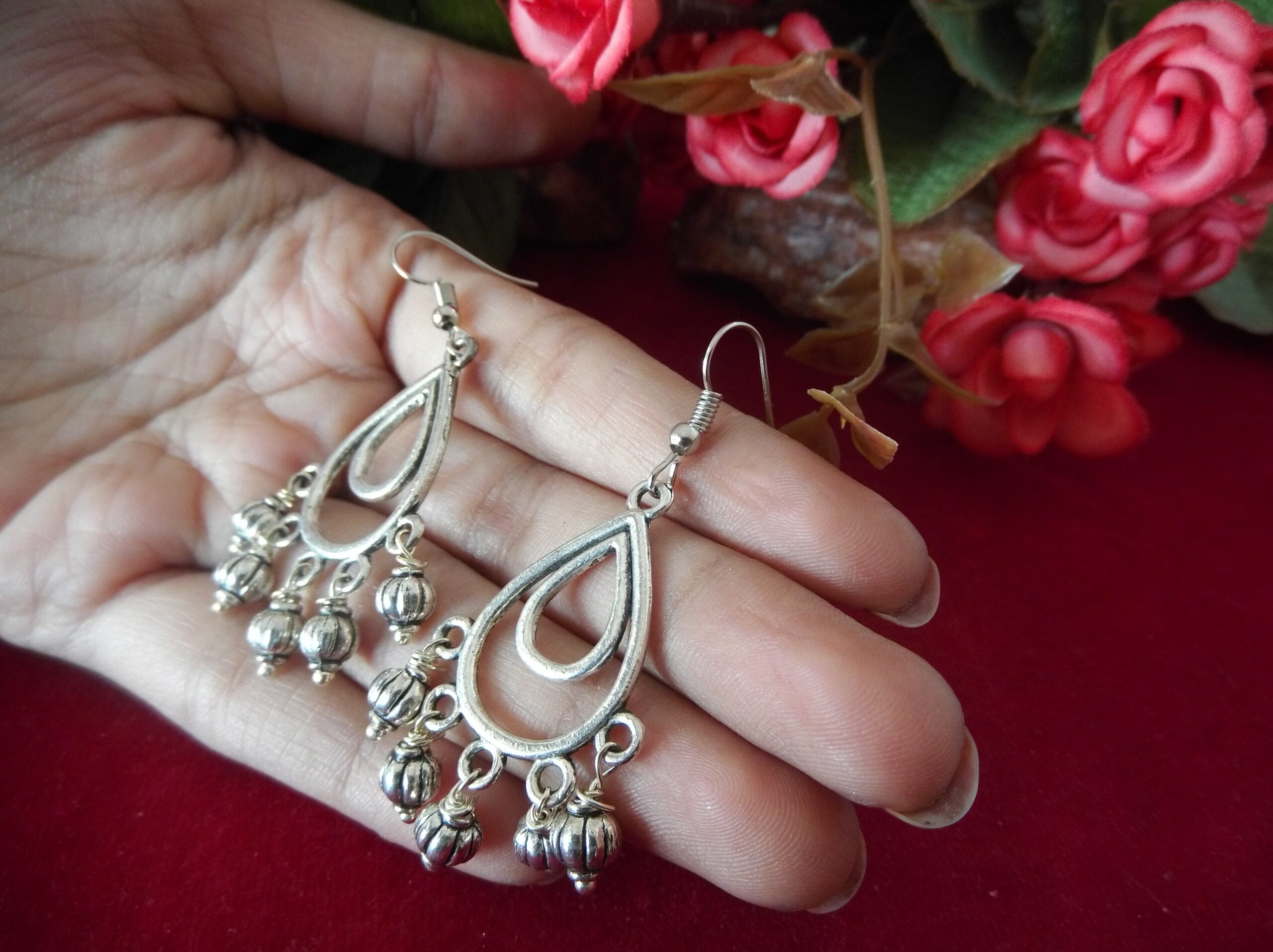 The silver oxidized finish adds a touch of vintage charm, creating a stunning backdrop for the dangling metallic balls. Each ball is meticulously crafted to perfection, reflecting light with grace and elegance. The addition of small balls adds an extra layer of detail, enhancing the overall allure of these earrings.