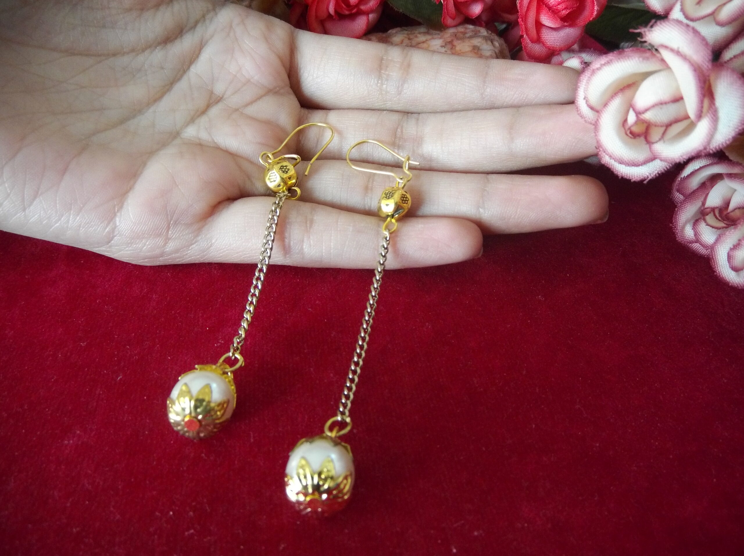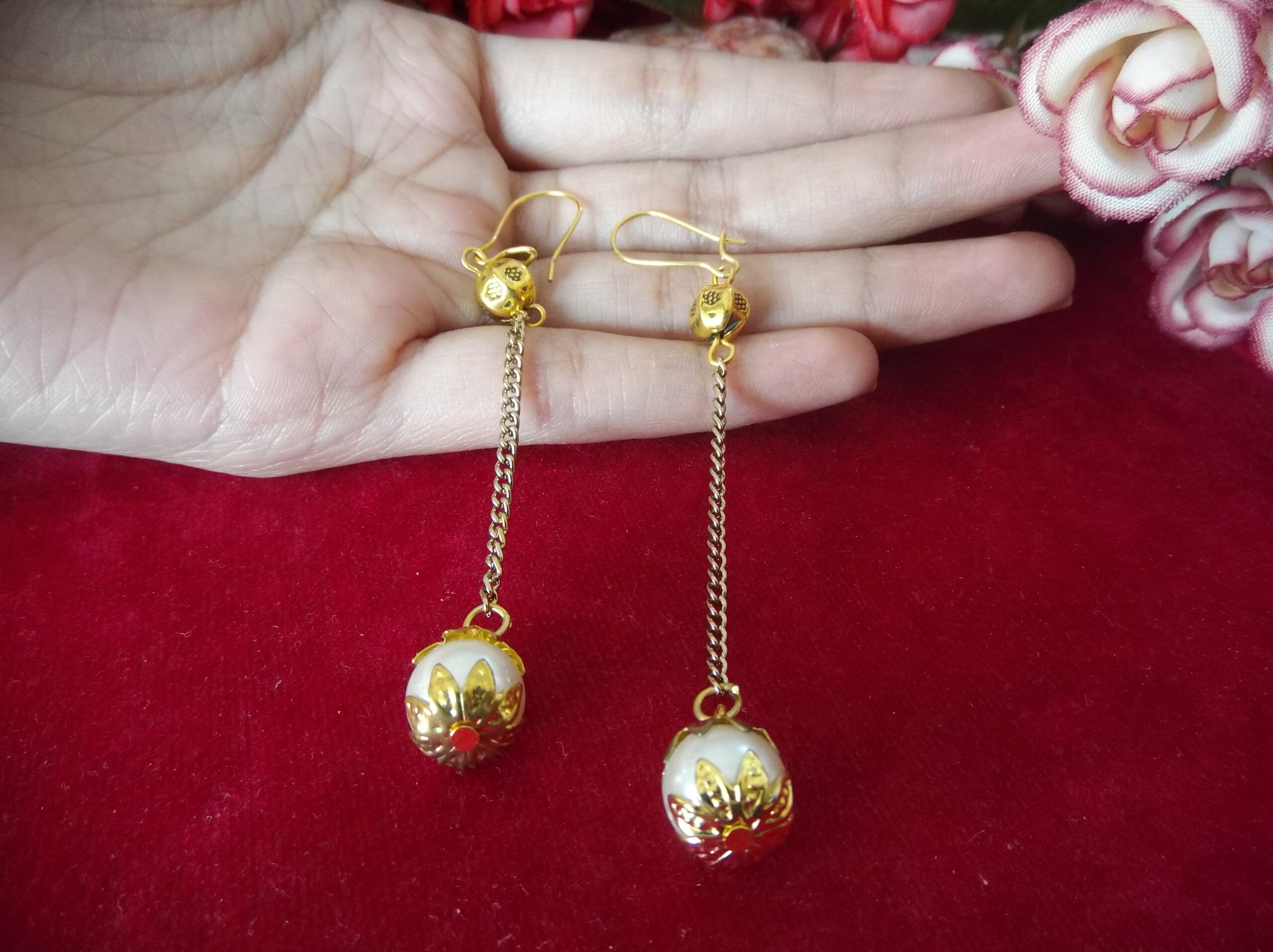 Step into a world of enchantment with our Golden Oxidized Earrings, where elegance meets sophistication in every detail. These captivating earrings feature a delicate hanging chain adorned with a stunning pearl, creating a mesmerizing focal point that exudes timeless beauty.